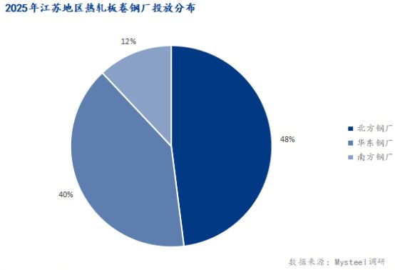 据Mysteel调研,2025年江苏地区热轧板卷资源结构中,约48%来自北方钢厂,40%来自华东本地,12%来自南方市场。受华东地区钢厂开工率及产能利用率整体下行影响,本地资源投放量有所收缩,对江苏市场价格形成一定支撑。然而,全年南北价差持续处于110–150元/吨的有利区间,促使北方资源加大南下力度,有效带动区域资源流动,缓解了本地供给收缩带来的结构性缺口,也使得江苏市场供需格局更依赖于跨区域资源调节。预计在南北价差持续稳定的情况下,北方钢厂资源南下仍具备稳定的经济性,其对江苏市场的资源供应量将延续高位态势。这一方面将有效保障区域资源供应,另一方面也可能对本地钢价上涨空间形成一定压制。